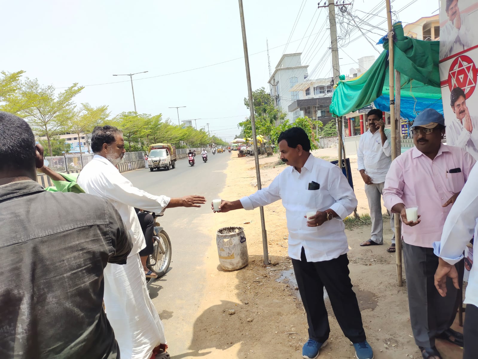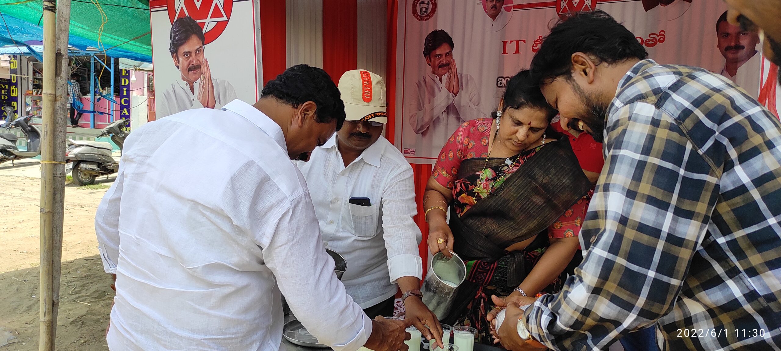 - On 28.05.2022, Mr. Bandi Ramakrishna, in his capacity as the in-charge, distributed buttermilk to the community at the Janasena party office.