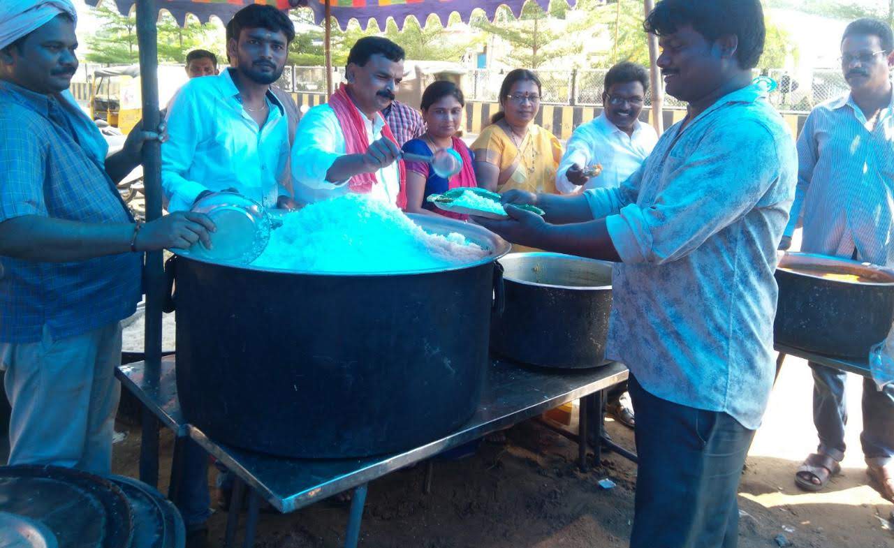 - Janasena party’s coordinator, Bandi Ramakrishna, hosted a lunch for construction workers at the party office on November 1, 2019.